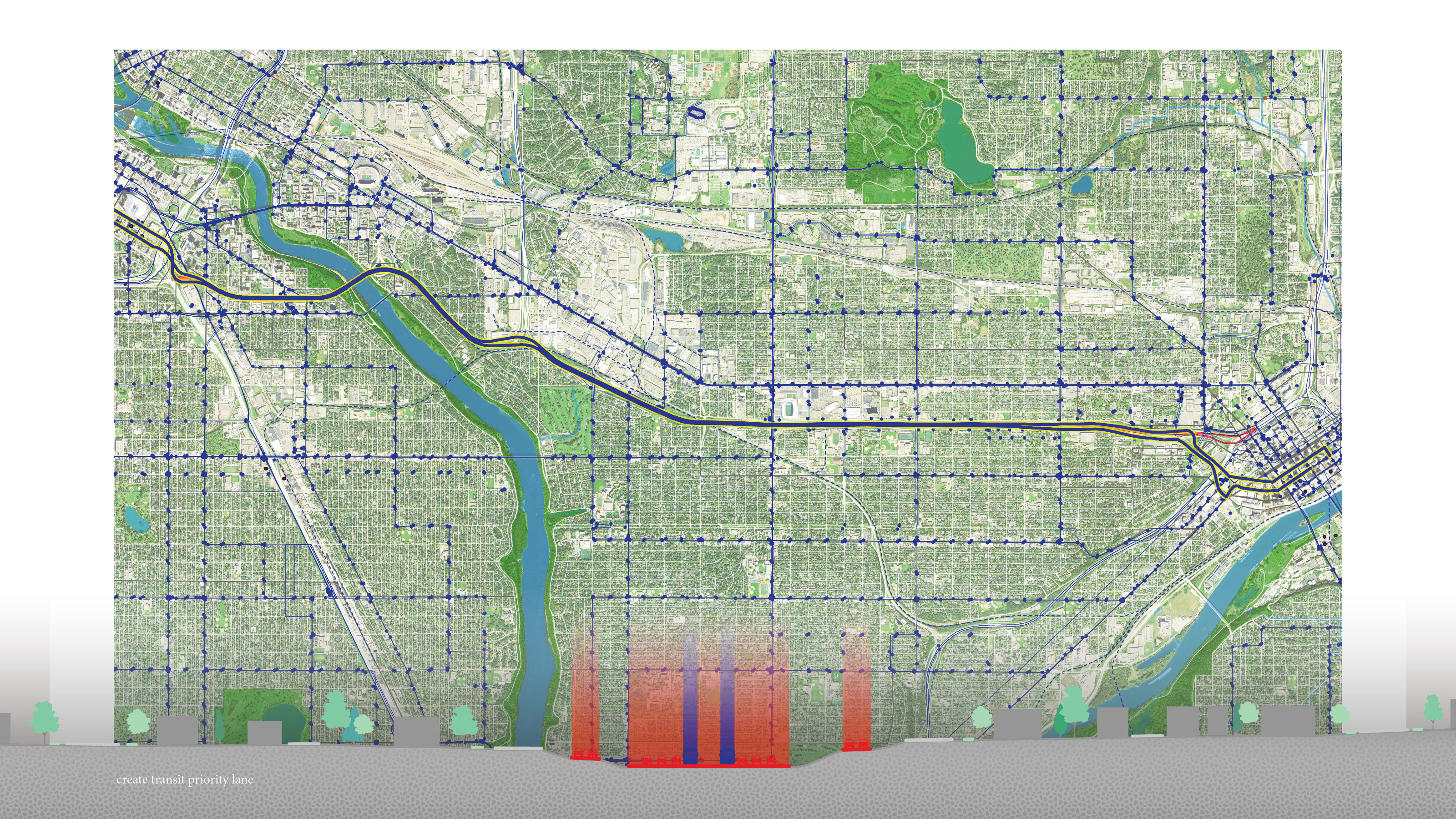 The Twin Cities Parkway is a phased proposal to graft the neighborhoods along I-94 back together through a site-sensitive and community-based redesign of the highway corridor between Minneapolis and St. Paul. Rather than just moving cars, the Twin Cities Parkway prioritizes moving people while also offering life-giving spaces that provide housing, parks and greenspaces, food and energy production, and other valuable social and ecosystem services to the community. In doing so, the Twin Cities Parkway begins to repair the laceration made by I-94 fifty years past. In the interstate’s place, a new type of mobility infrastructure is grown, one that stores carbon instead of emits, connects rather than divides, purifies rather than pollutes, calms rather than congests, and heals rather than hurts. The Twin Cities Parkway proposal represents what we’ve learned and how we’ve progressed in the fifty years since we first allowed our cities to be rent asunder by urban highways.