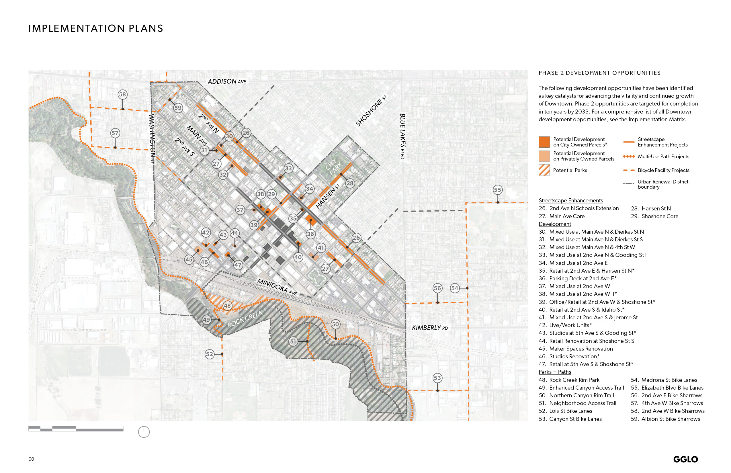 Downtown Twin Falls historically served as the center of the Magic Valley, an agricultural region located along the Snake River in southern Idaho. Following a familiar trajectory, the Downtown area experienced a period of decline in the late 1900s as car-centric, strip commercial development stretched northwards along Blue Lakes Boulevard. To bring life back to the historic center, we worked with the community to identify Downtown’s overlooked assets — its hidden gems — to polish and turn into major features and attractions. With a born-and-raised Magic Valley local on our design team, we developed a bold set of recommendations that leverage Twin Falls’ untapped potential to create a vibrant, sustainable, connected, and scenic Downtown.